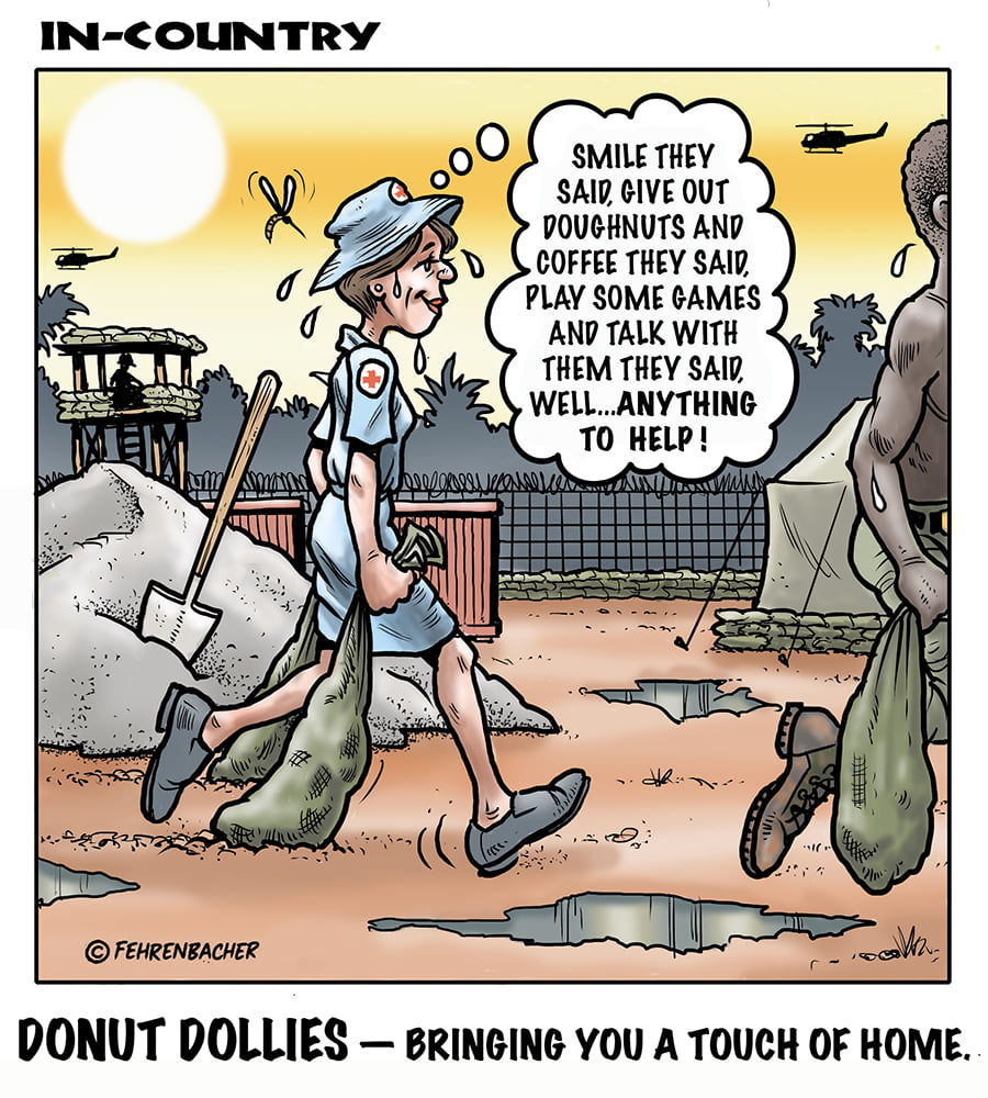 Phil enlisted in the Army in 1965 where you served for years in Vietnam.  He became a graphic designer and has worked for the state of Oregon for 26 years.  He retired in 2003 and started the Cartoon "In-Country".  The cartoons reflect his experiences during his tour of duty in South Vietnam.