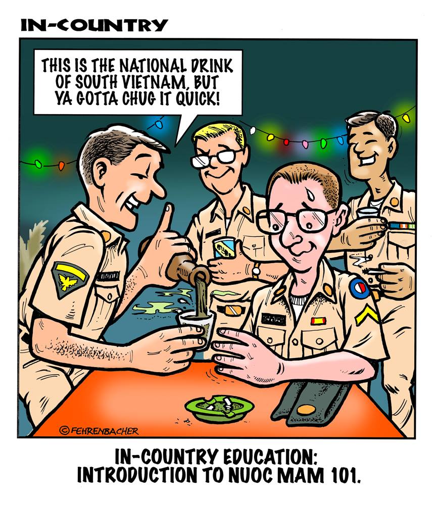 Phil enlisted in the Army in 1965 where you served for years in Vietnam. He became a graphic designer and has worked for the state of Oregon for 26 years. He retired in 2003 and started the Cartoon "In-Country". The cartoons reflect his experiences during his tour of duty in South Vietnam.